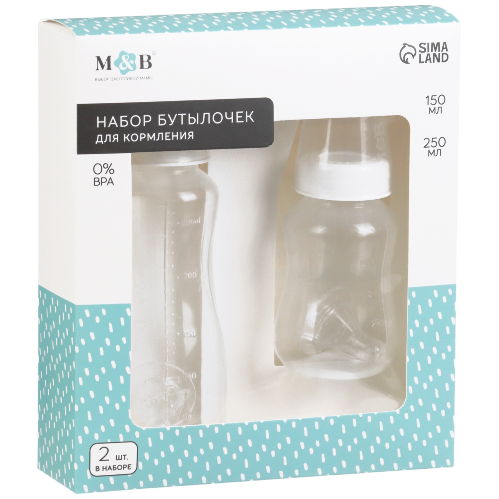 Набор бутылочек для кормления "Basic M&B" 150 и 250 мл, приталенные, цвет белый (№10597554).