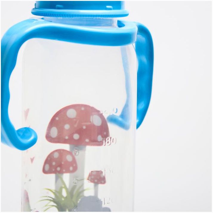 Пластиковую бутылочку удобно давать ребёнку. Лёгкую ёмкость малыш сможет самостоятельно удерживать в ручках. Износостойкий материал не бьётся и прослужит около двух лет. Полипропилен, использующийся в пищевой промышленности, безопасен для здоровья: не выделяет вредных веществ при контакте с жидкостью и стерилизации.
