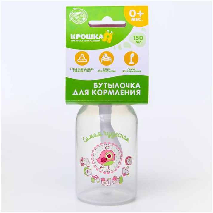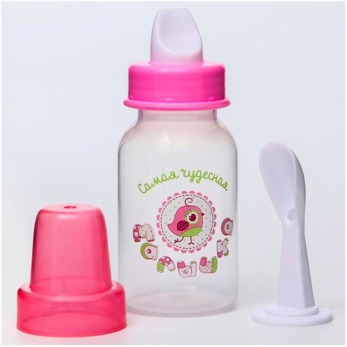 Бутылочка 3 в 1 «Чудесная малышка», в комп ложка и носик-поильник, 150 мл, от 6 мес, цвет розовый (№2463783).
