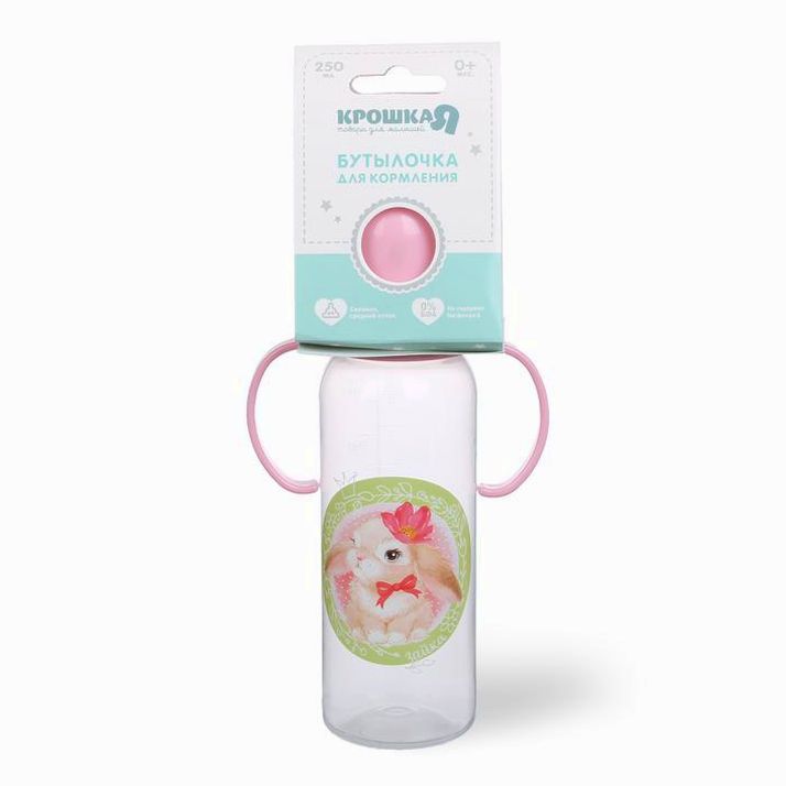 Бутылочка для кормления «Зайка» с ручками, 250 мл, от 0 мес., цвет розовый (№2667389).