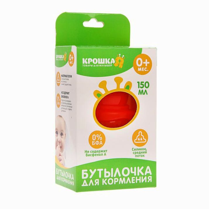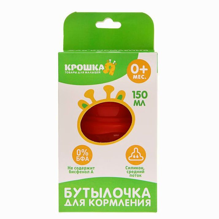 Бутылочка для кормления цветная с ручками, 150 мл, от 0 мес., цвет красный (№2825261).