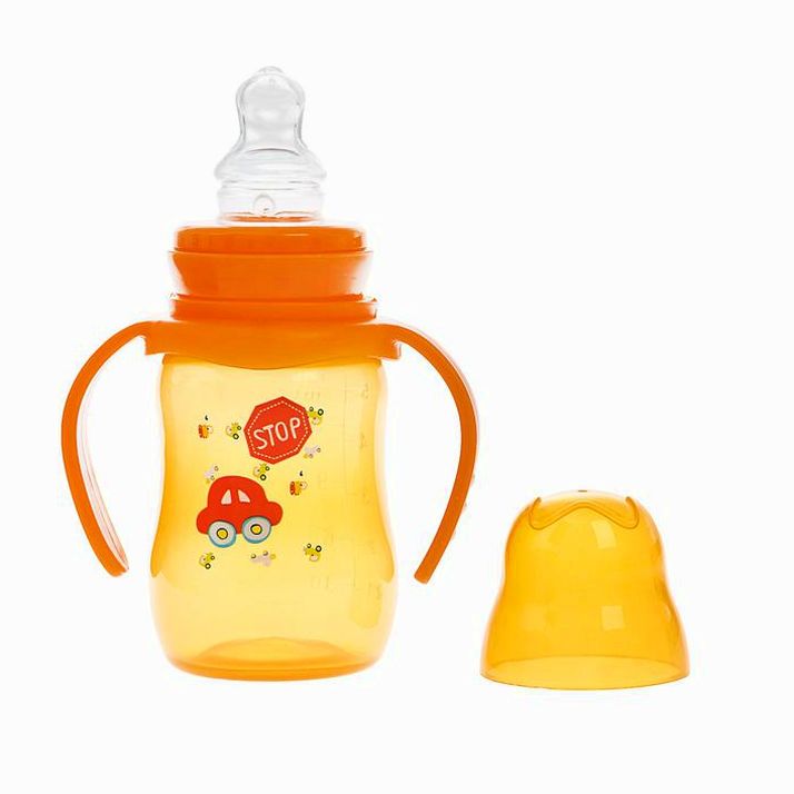 Бутылочка для кормления цветная с ручками, 150 мл, от 0 мес., цвет золотой (№2825265).