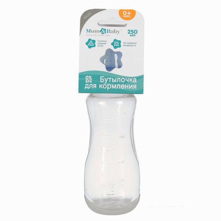 Бутылочка для кормления, классическое горло, приталенная, 250 мл., от 3 мес., цвет синий (№2969732).