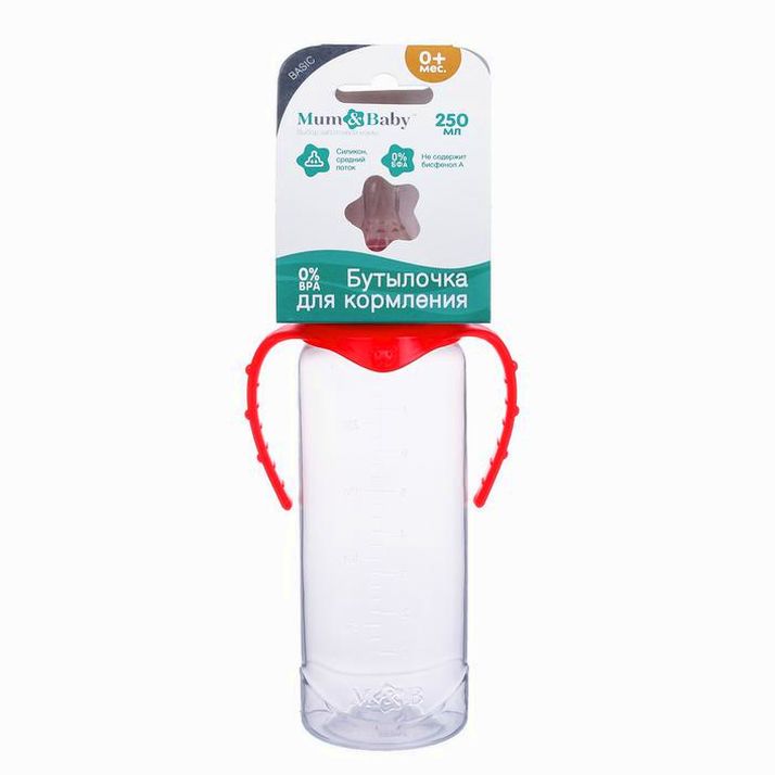 Бутылочка для кормления, классическое горло, с ручками, 250 мл., от 3 мес., цвет красный (№2969746).