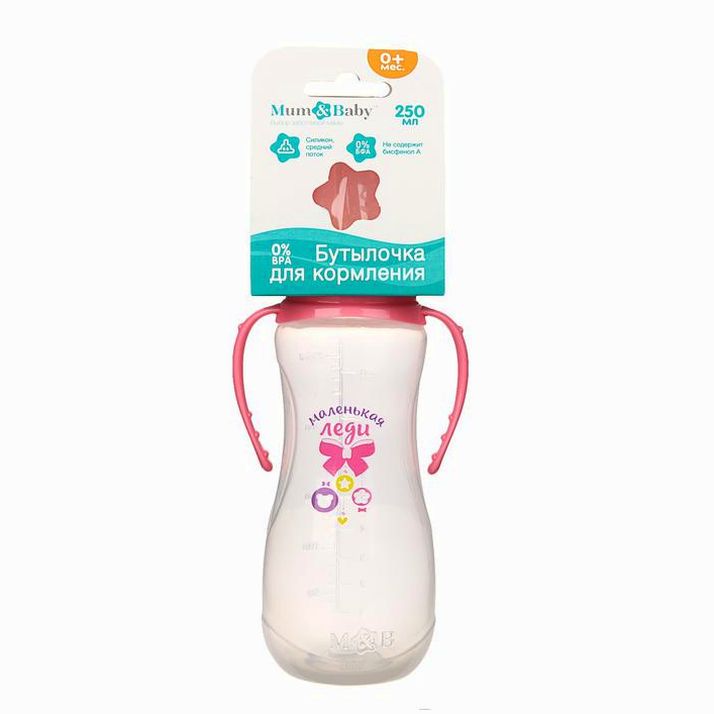 Бутылочка «Маленькая леди» приталенная, с ручками, 250 мл, от 0 мес., цвет розовый (№2969807).