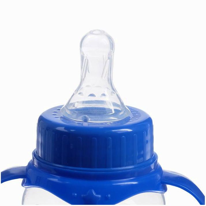 Бутылочка для кормления «Малыш», классическое горло, с ручками, 250 мл, от 0 мес., цвет синий (№2969820).