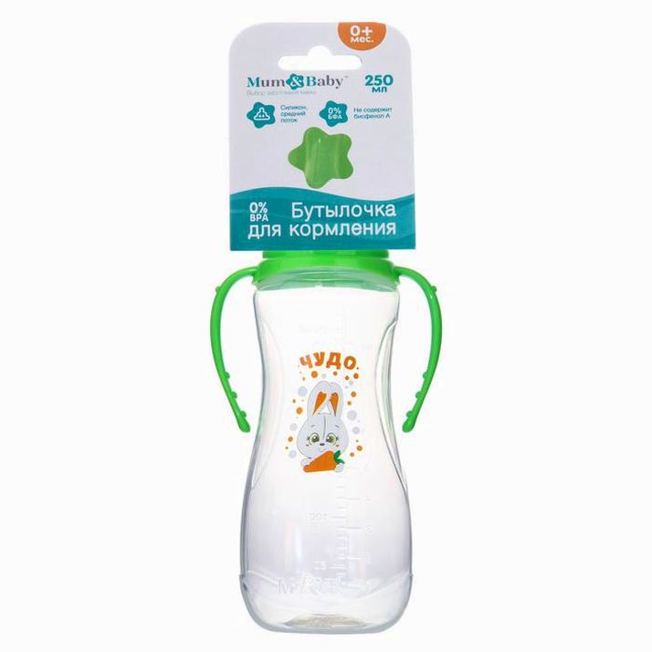 Бутылочка «Зайка Тяпа» , с ручками, 250 мл, от 0 мес., цвет зелёный (№2969824).