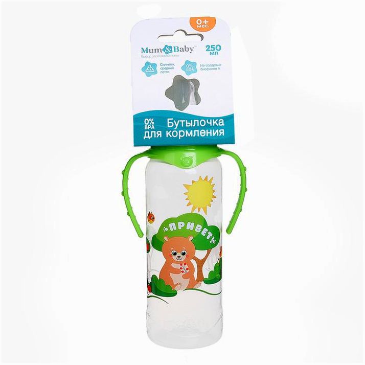 Бутылочка «Лесная сказка», классическое горло, с ручками, 250 мл., от 0 мес., цвет зелёный (№2969827).