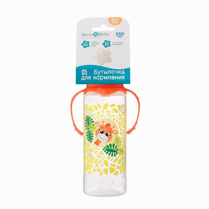 Бутылочка «Жирафик Лило», классическое горло, с ручками, 250 мл., от 0 мес., цвет оранжевый (№2969828).