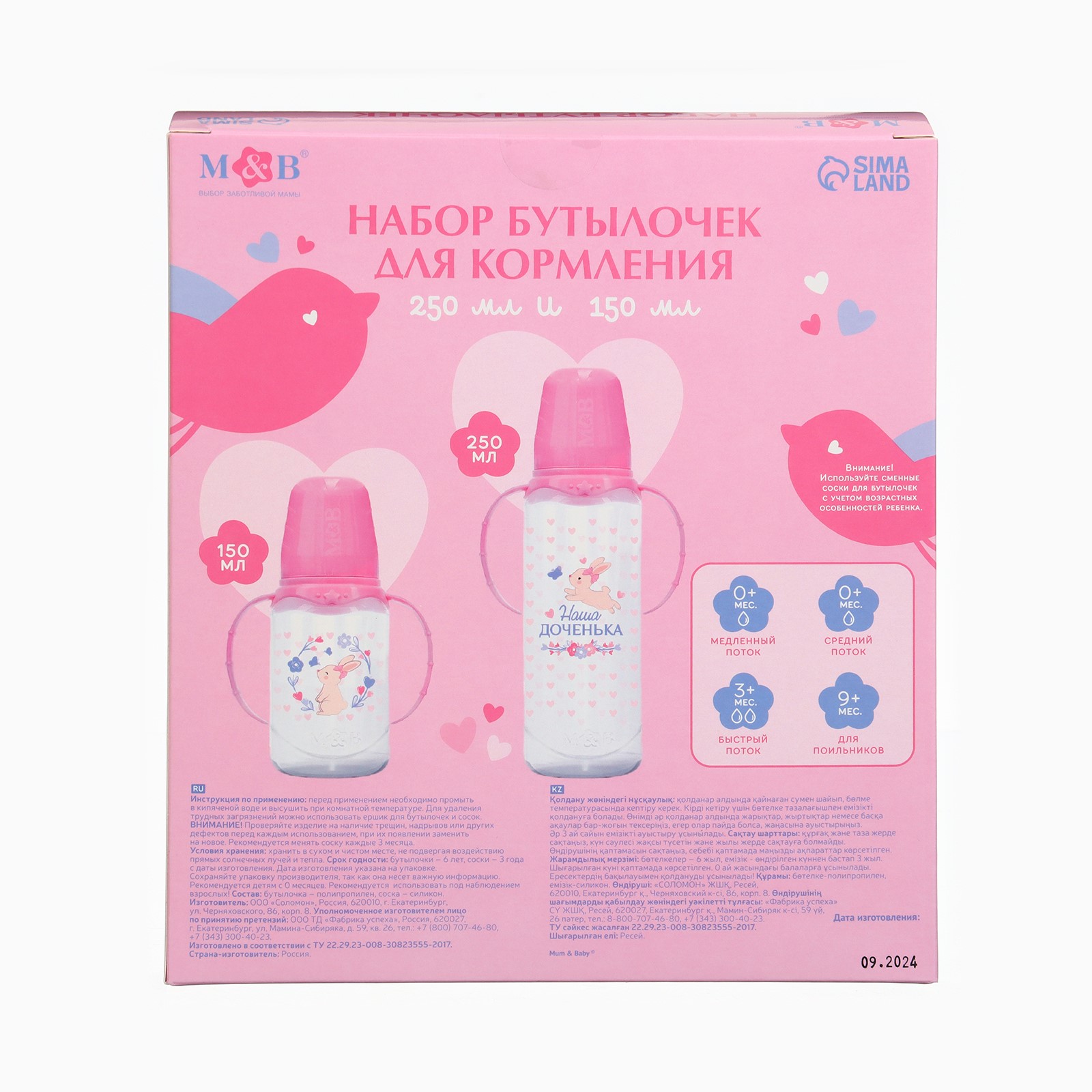 Набор бутылочек для кормления «Любимая доченька» 150 и 250 мл, прямые, цвет розовый (№3654424).