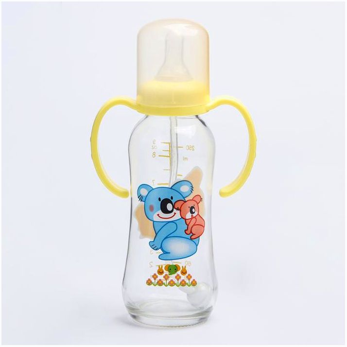 Бутылочка для кормления 250 мл., стекло, с ручками, цвет МИКС (№4477717).