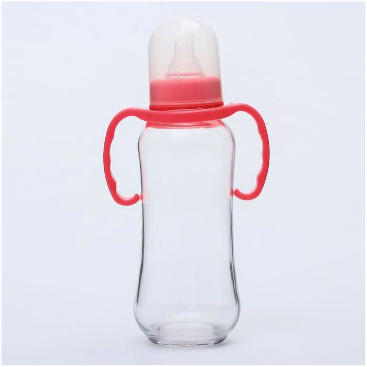 Бутылочка для кормления, стекло, 250 мл., с ручками, цвет МИКС (№4627671).