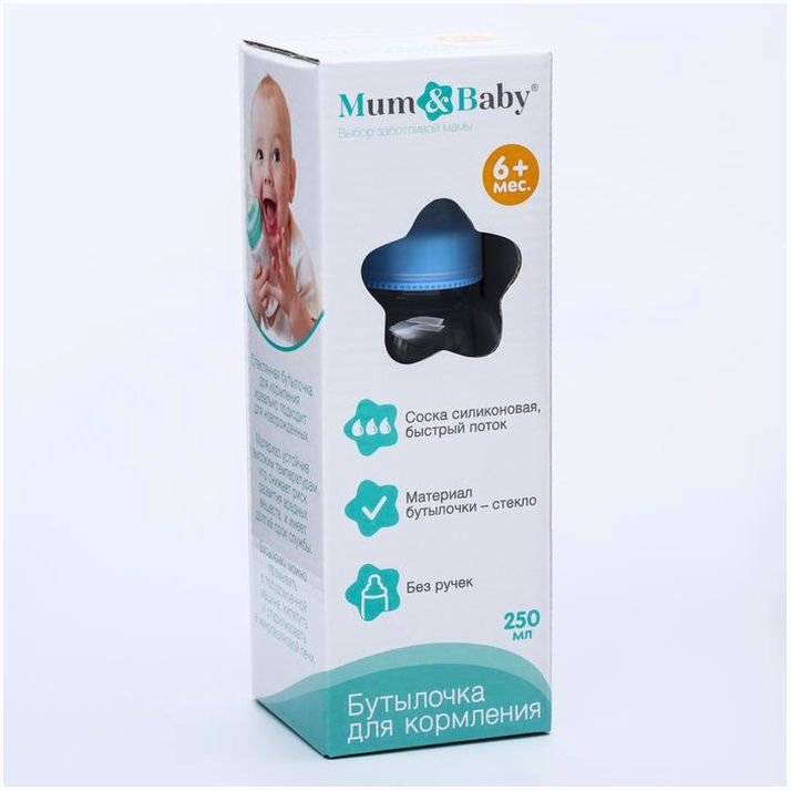 Бутылочка для кормления, стекло, 250 мл., без ручек, цвет МИКС (№4627672).