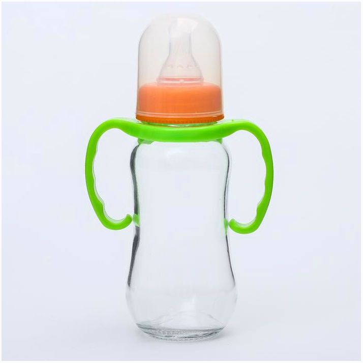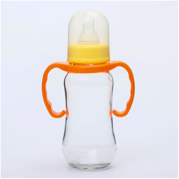 Бутылочка для кормления, стекло, 200 мл., с ручками, цвет МИКС (№4627675).