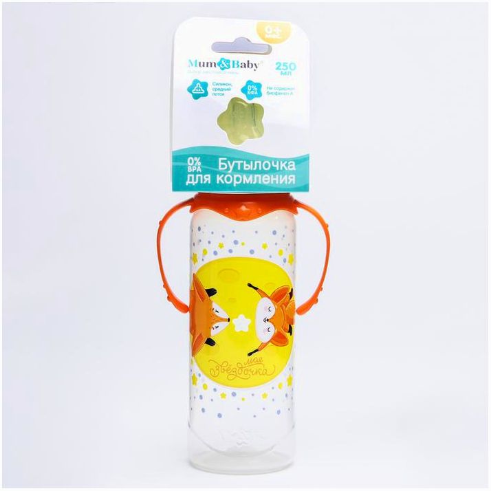 Бутылочка «Лисички: мамы и малыши», классическое горло, 250 мл., от 0 мес., цилиндр, с ручками (№4644212).