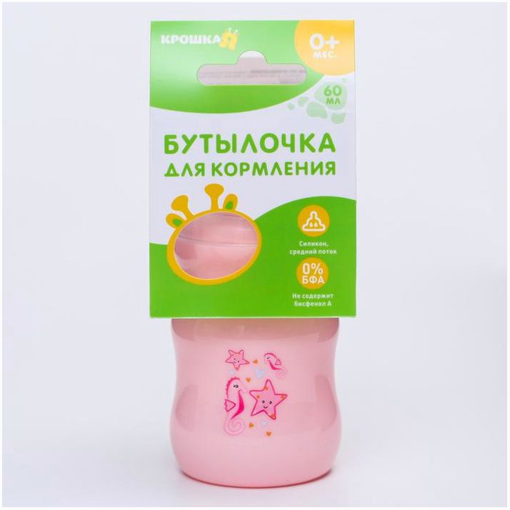 Бутылочка для кормления, классическое горло, 60 мл., от 0 мес., медленный поток, цвет розовый (№4729888).