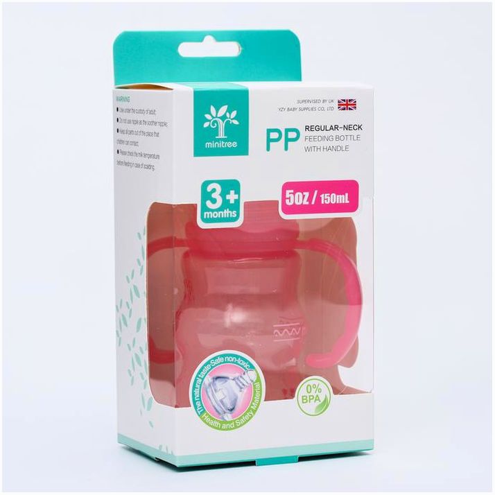 Бутылочка для кормления, с ручками, 150 мл., цвет розовый (№4803512).