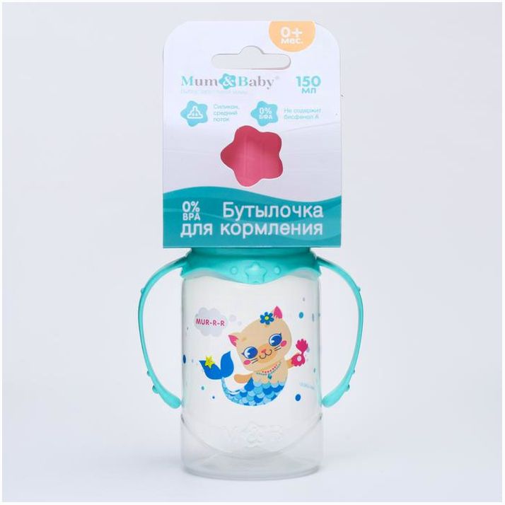 Бутылочка «ТРЕНД. Которусалка», клас горло, 150 мл, от 3 мес, цилиндр, с ручками, цвет розовый (№4882550).