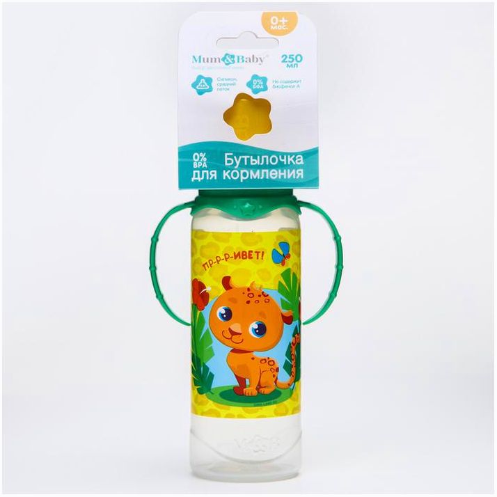 Бутылочка для кормления «ТРЕНД. Леопард», классическое горло, 250 мл., от 3 мес., цилиндр, с ручками (№4882553).