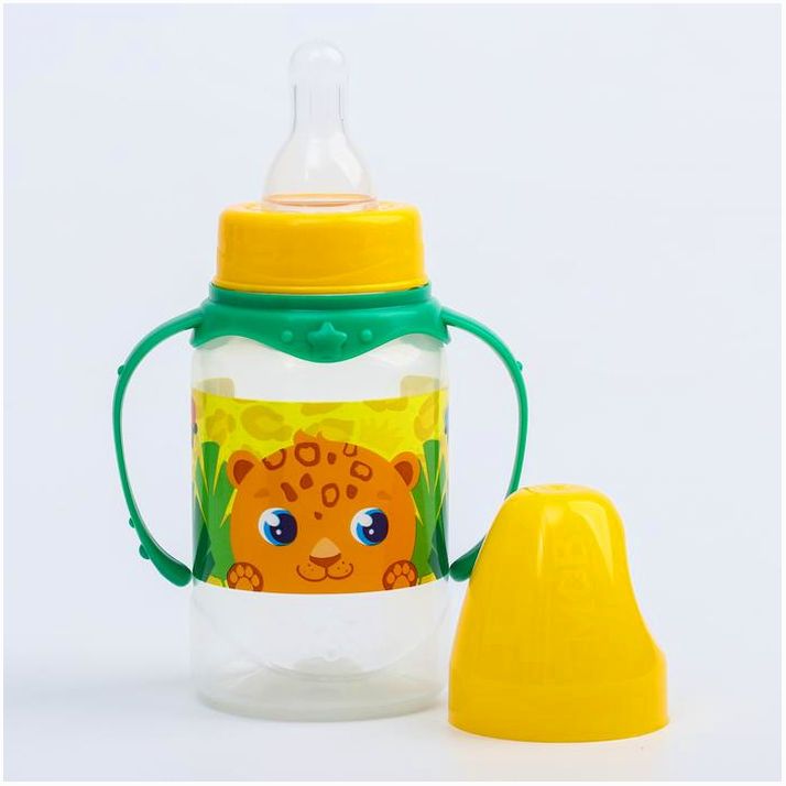 Бутылочка «ТРЕНД. Леопард», классическое горло, 150 мл., от 3 мес., цилиндр, с ручками, цвет желтый (№4882554).