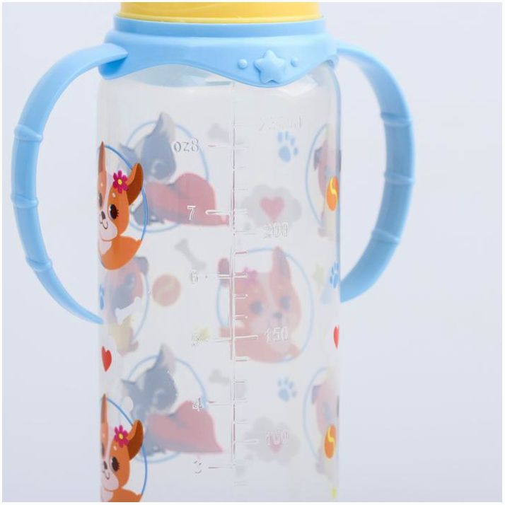 Бутылочка «ТРЕНД. Песики», классическое горло, 250 мл., от 3 мес., цилиндр, с ручками, цвет голубой (№4882555).