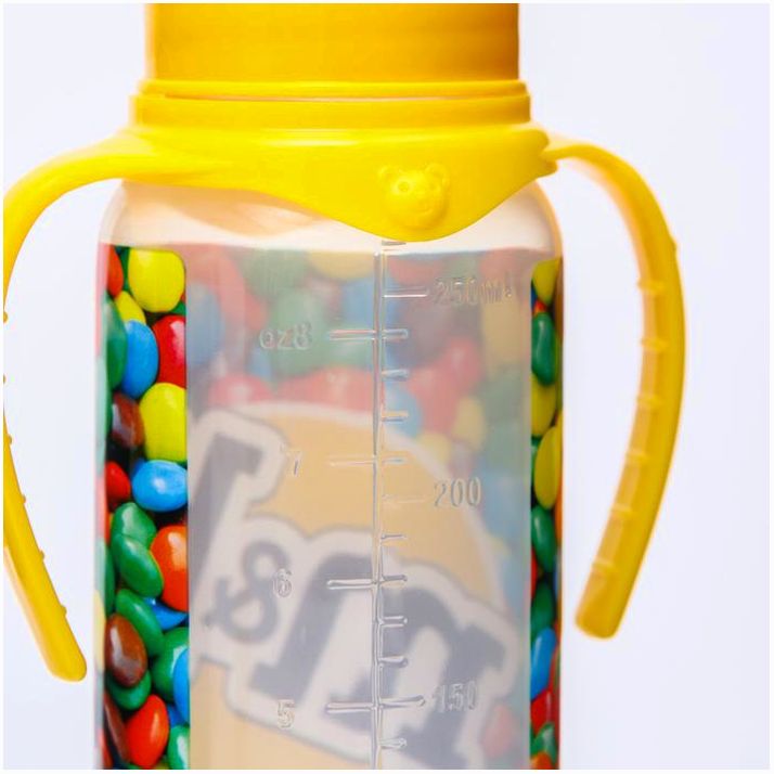 Бутылочка для кормления «Драже M&B», классическое горло, 250 мл., от 3 мес., цилиндр, с ручками (№5399868).