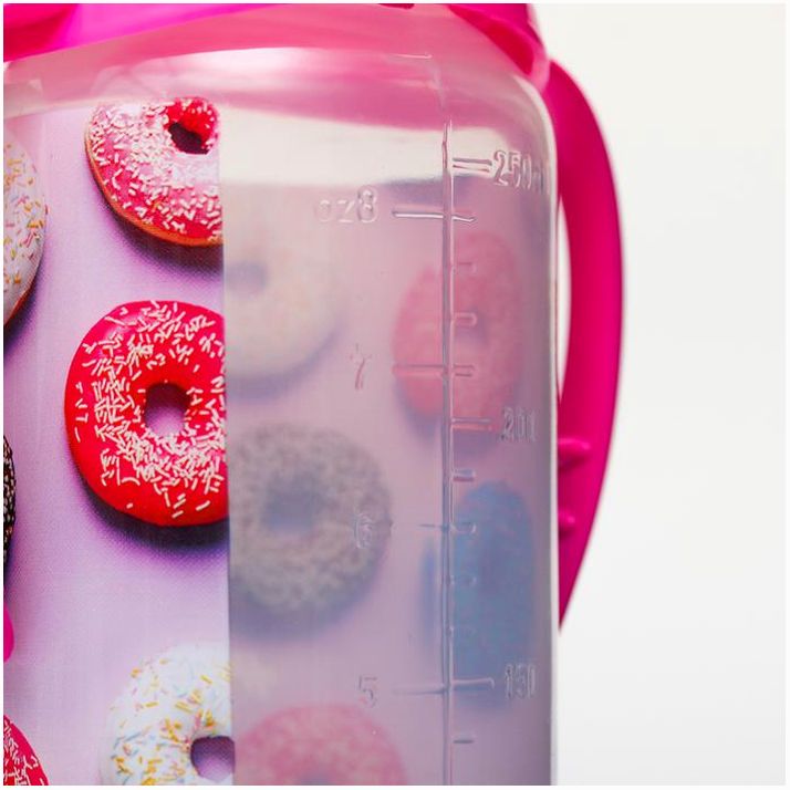 Бутылочка для кормления «Пончики», классическое горло, 250 мл., от 0 мес., цилиндр, с ручками (№5399881).
