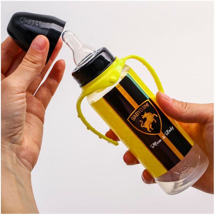 Бутылочка для кормления BABYDJIM, классическое горло, 250 мл., цилиндр, с ручками (№5399883).