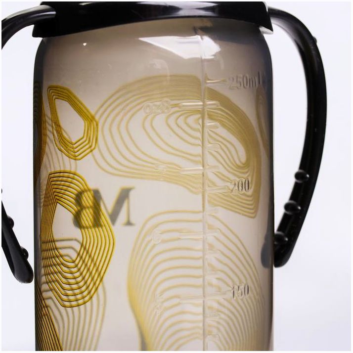 Бутылочка для кормления «M&B», классическое горло, с ручками, 250 мл., от 0 мес., Золотая коллекция (№5483881).