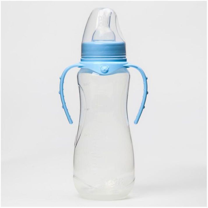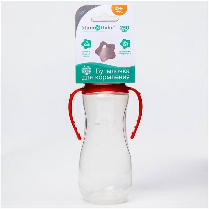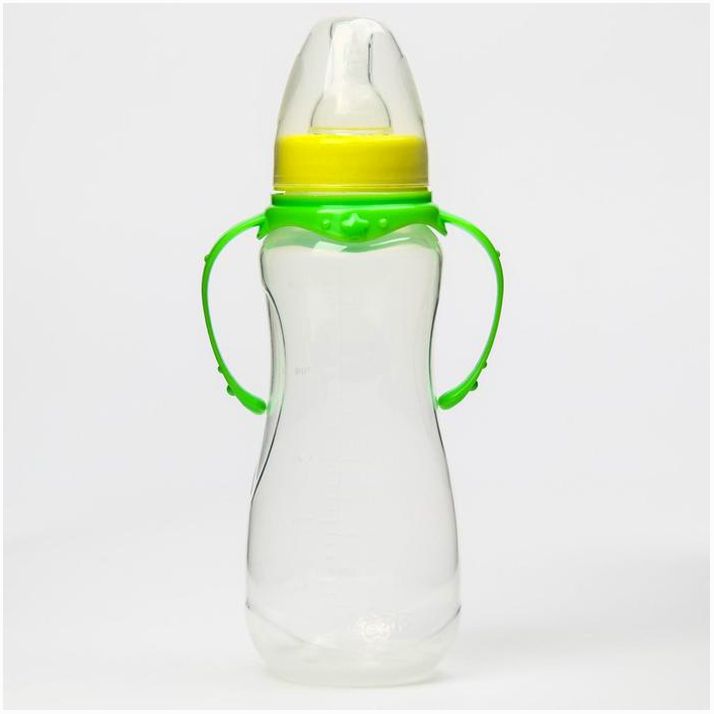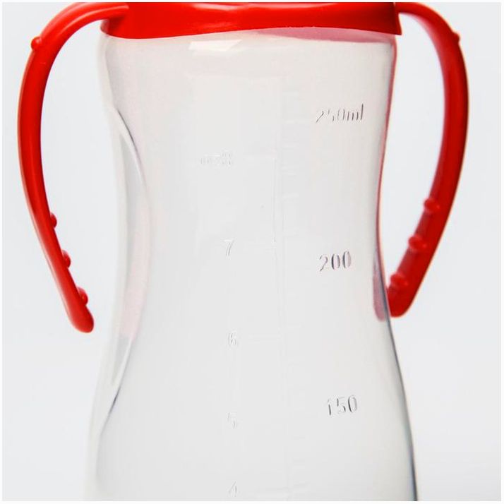 Бутылочка для кормления, классическое горло, 250 мл., от 0 мес., приталенная, с ручками, цвет МИКС (№7012037).