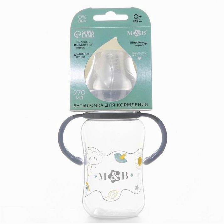 Бутылочка для кормления, широкое горло, от 3 мес., с ручками 270 мл. (№7701969).