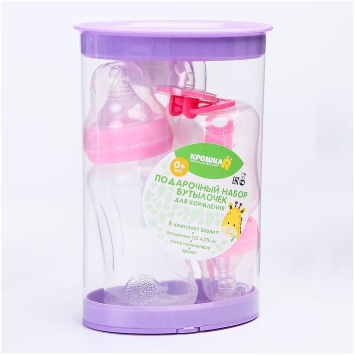 Набор подарочный (бутылочки 270 мл., 125 мл., соска-пустышка, ершик), цвет розовый (№4477749).