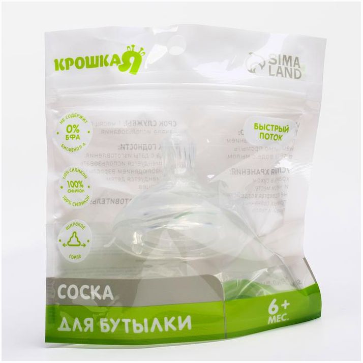 Соска силиконовая, широкое горло, от 6 мес., быстрый поток (№6929808).