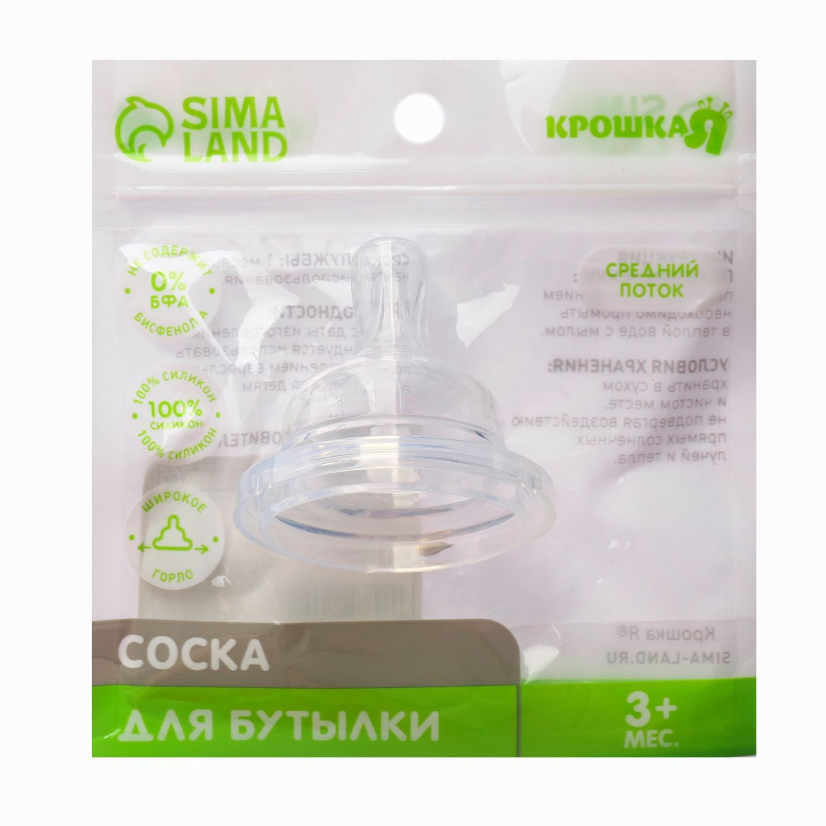 Соска силиконовая, ШГ, ?50мм, усиленное кольцо +3 мес., средний поток (№9824216).