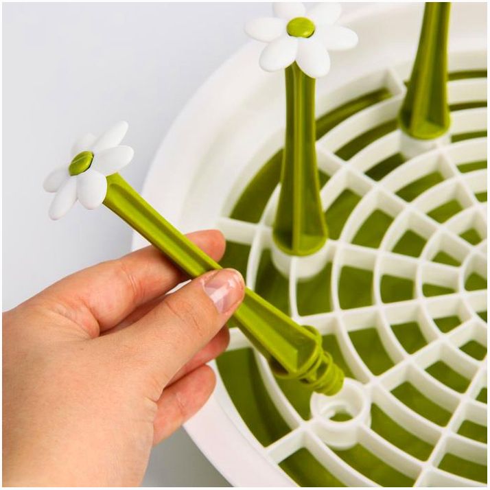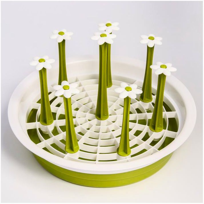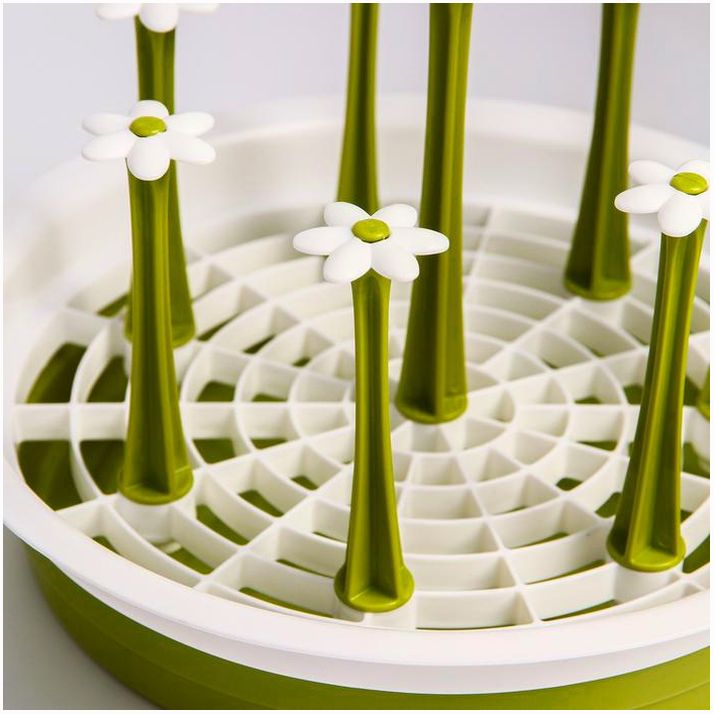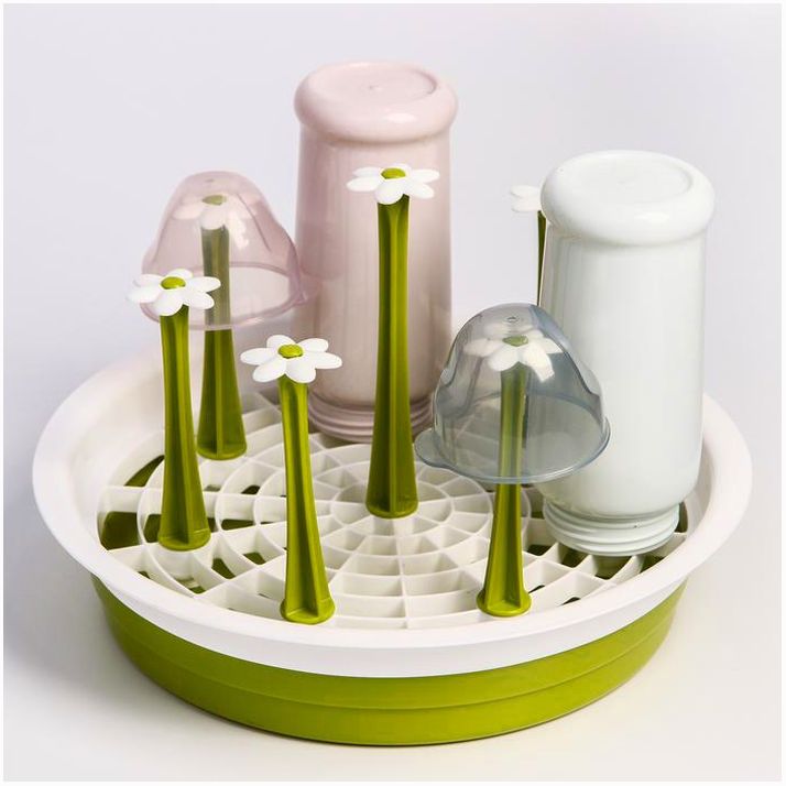 Сушилка предназначена для удобного и гигиеничного размещения чистых детских бутылочек. Вымытые ёмкости переверните вверх дном и наденьте на держатели, которые также подходят для пустышек, сеточек от ниблеров, деталей молокоотсосов и так далее.