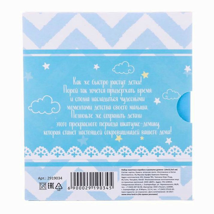 Набор памятных коробочек для мальчика "Шкатулка-домик нашего малыша" (№2919034).