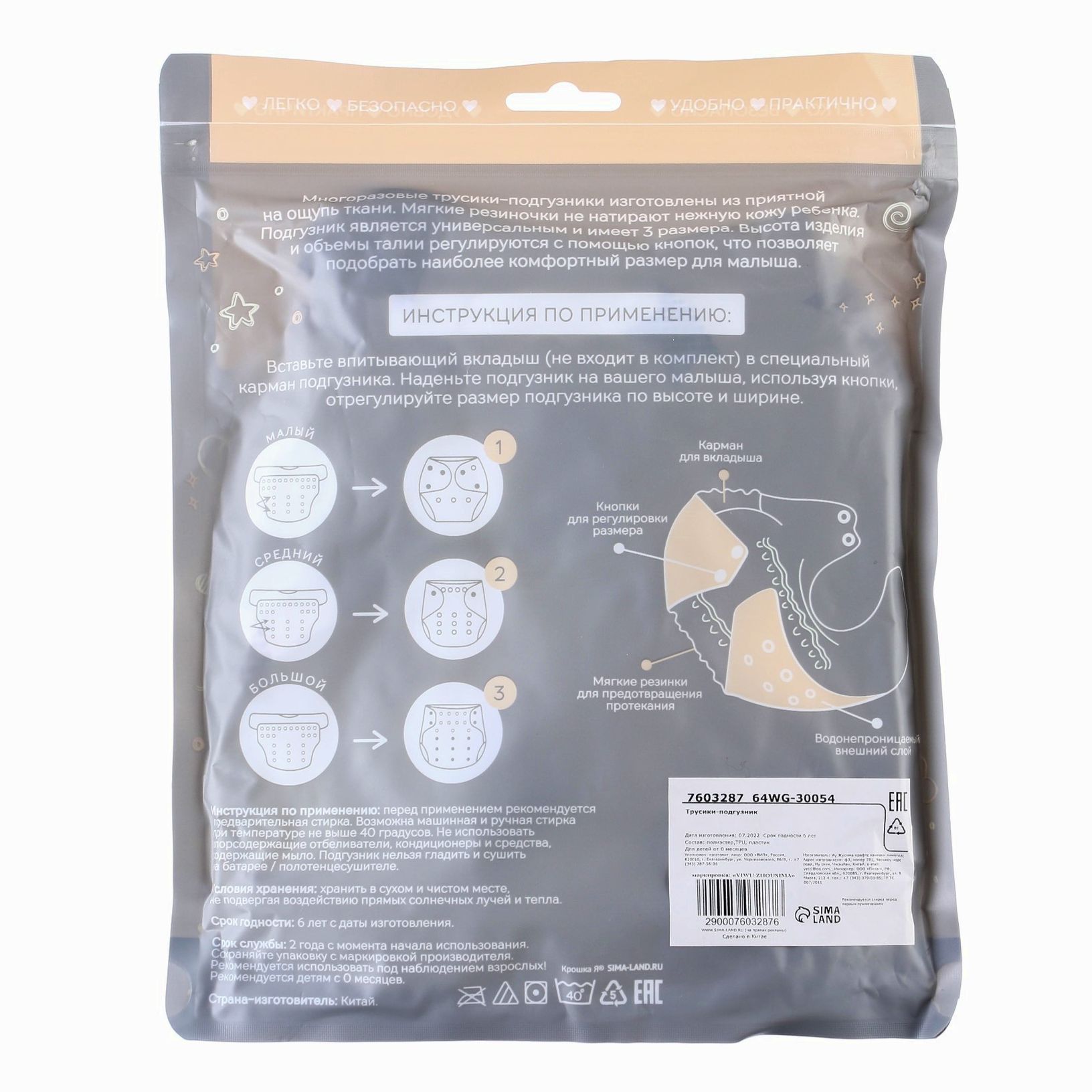 • Подгузник имеет удобный кармашек для вкладыша;