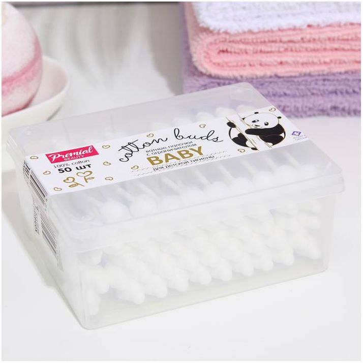 Ватные палочки для детской гигиены Premia с ограничителем 50 шт. (№7488614).
