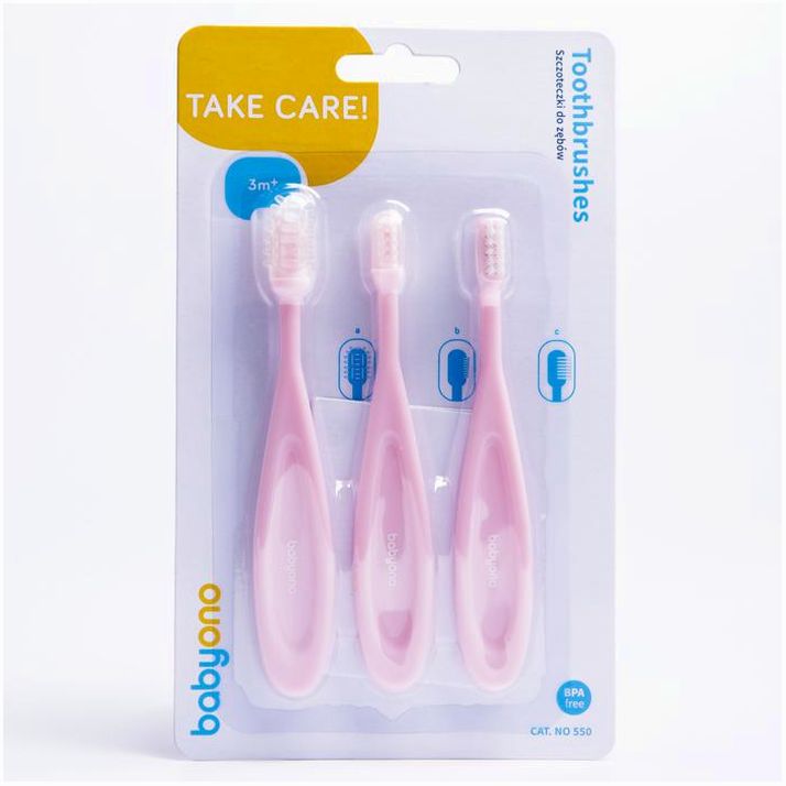 Комплект научит ребёнка самостоятельной чистке. Тренажёр подходит для периода прорезывания зубов: малыш сможет покусывать его и массировать дёсны. Щётка с силиконовыми щетинками понадобится для бережной чистки. Классическая зубная щётка предназначена для подросшего малыша, она мягко удаляет остатки пищи.