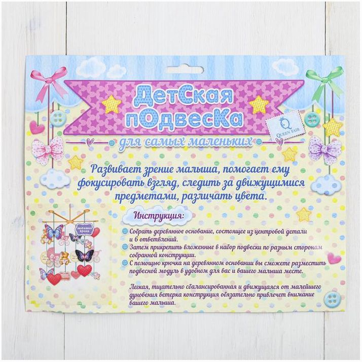 Готовый мобиль разместите с помощью деревянного крюка в любом удобном для вас месте. Особенность конструкции в её небольшом весе, а значит - яркие элементы будут колыхаться от любого дуновения ветерка.