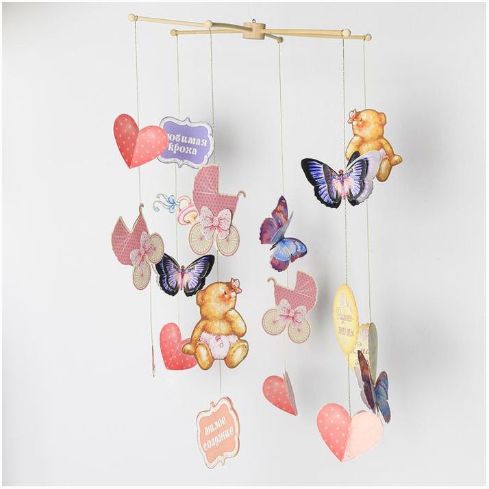 Такой предмет привнесёт в интерьер детской неповторимые нотки, а малышу принесёт тонну удовольствия. Глядя, как фигурки, словно бабочки, мелькают над его кроваткой, он будет заворожёно изучать их и наслаждаться их движением. А ещё каруселька поможет родителям, когда ребёнок капризничает или не хочет засыпать.