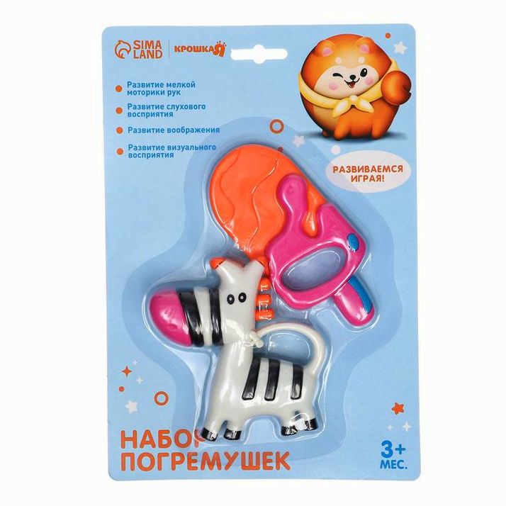 Набор погремушек «Зебра и Эскимо», 2 шт, Крошка (№142436).