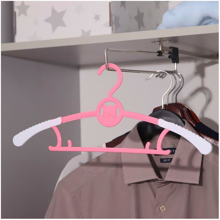Вешалка – это компактное приспособление, которое позволит вам разместить в гардеробе классические штаны из лёгких или плотных материалов, блузки, рубашки, кофты и другие вещи. Изделие практичной формы занимает мало места, что позволяет экономить пространство в шкафу. Противоскользящее покрытие надёжно зафиксирует одежду и предотвратит её падение.