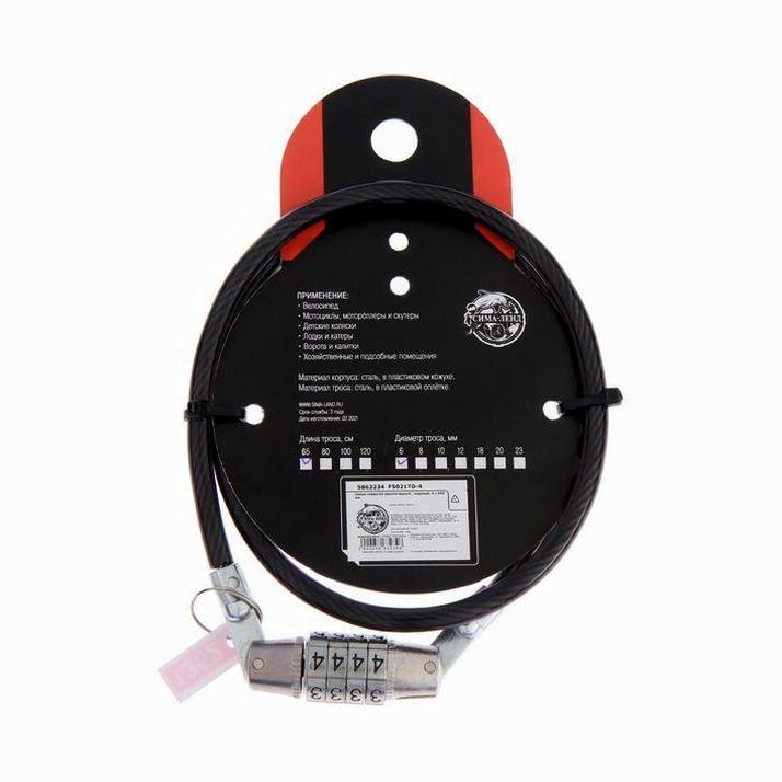 Замок навесной велосипедный Dream Bike, 6 х 650 мм, кодовый (№5863234).