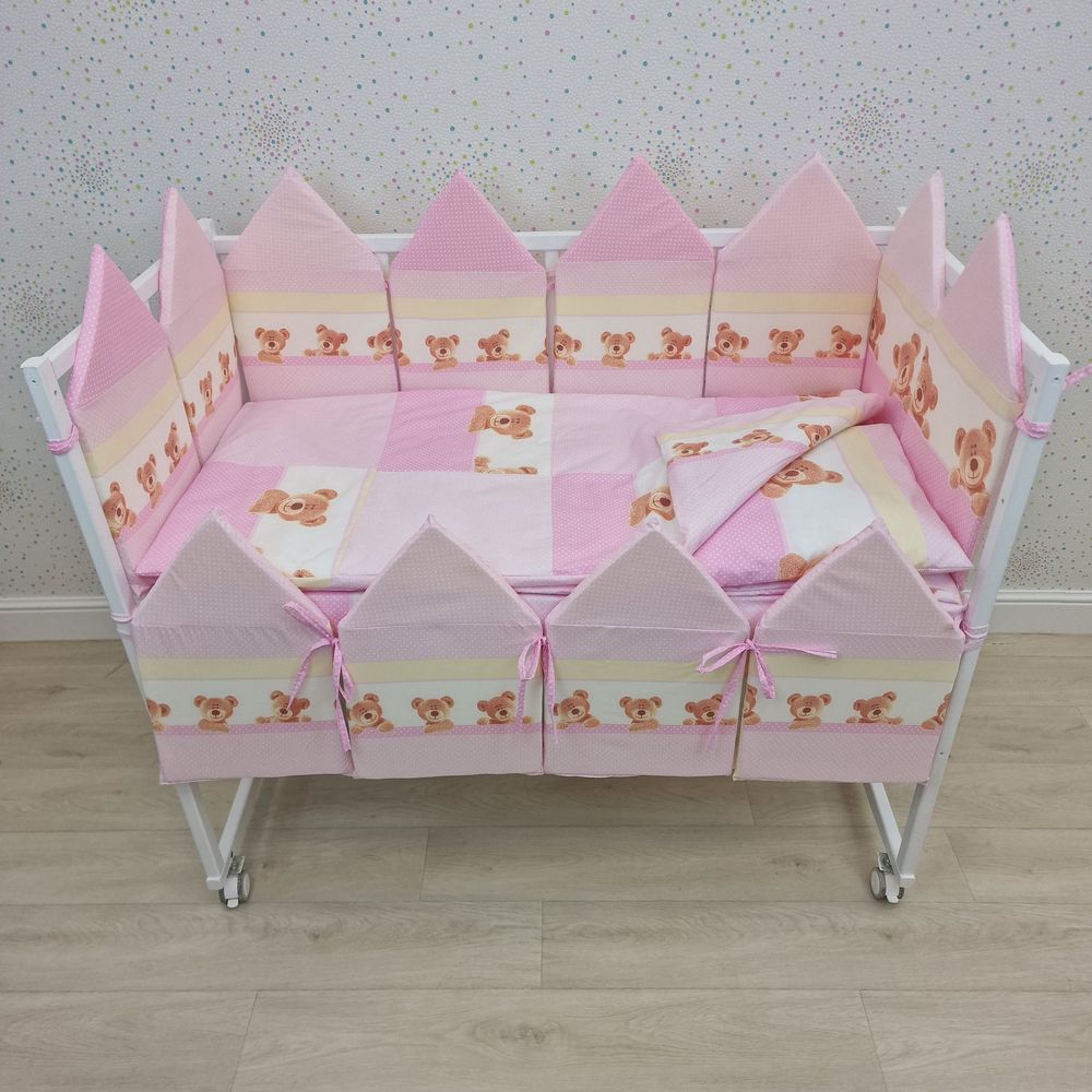 КПБ 17 пр (борт + пододеяльник + одеяло + наволочка + подушка + простынь (бязь) "Домики" (№1128-2-1бб_03) цвета в ассортименте.