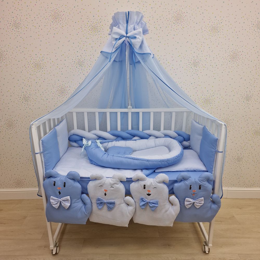 КПБ 17 пр (балдахин + борт + пододеяльник + одеяло + наволочка + 2подушки + простынь + гнездо (бязь) (№1171-0-1_03) цвета в ассортименте.