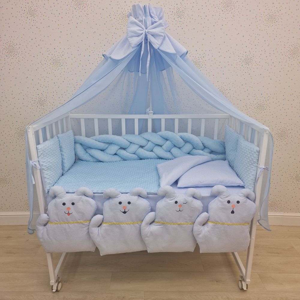КПБ 17 пр (балдахин + борт + пододеяльник + одеяло + наволочка + подушка + простынь (плюш/бязь) (№1179-0-1) цвета в ассортименте.