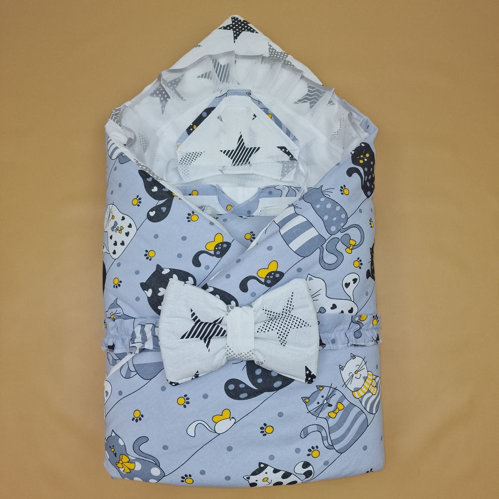 Конверт комплект на выписку 12 пр: одеяло+пододеяльник+уголок+2 пеленки+3 распашонки+3 чепчика+бант (№1878б-2-1_о) цвета в ассортименте.