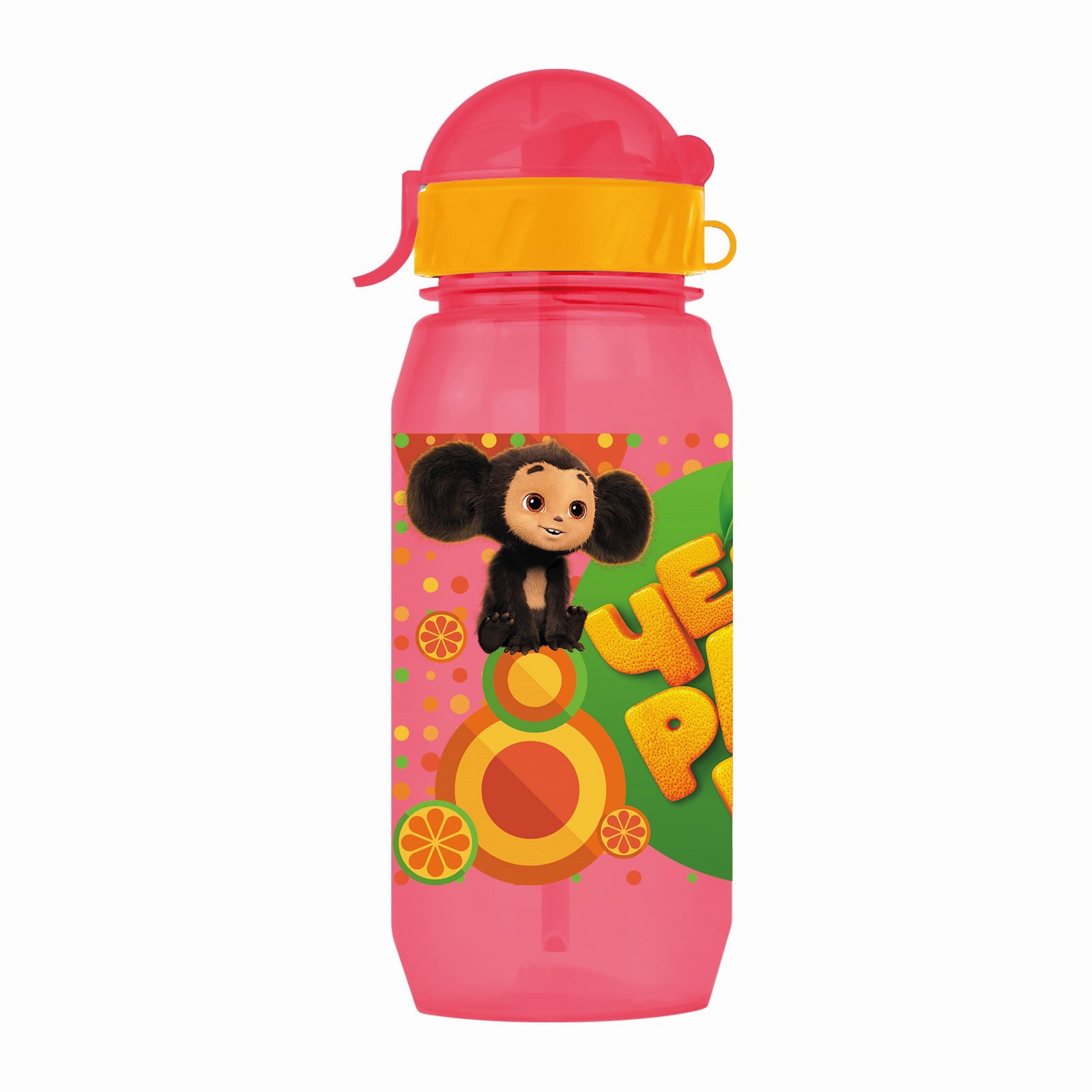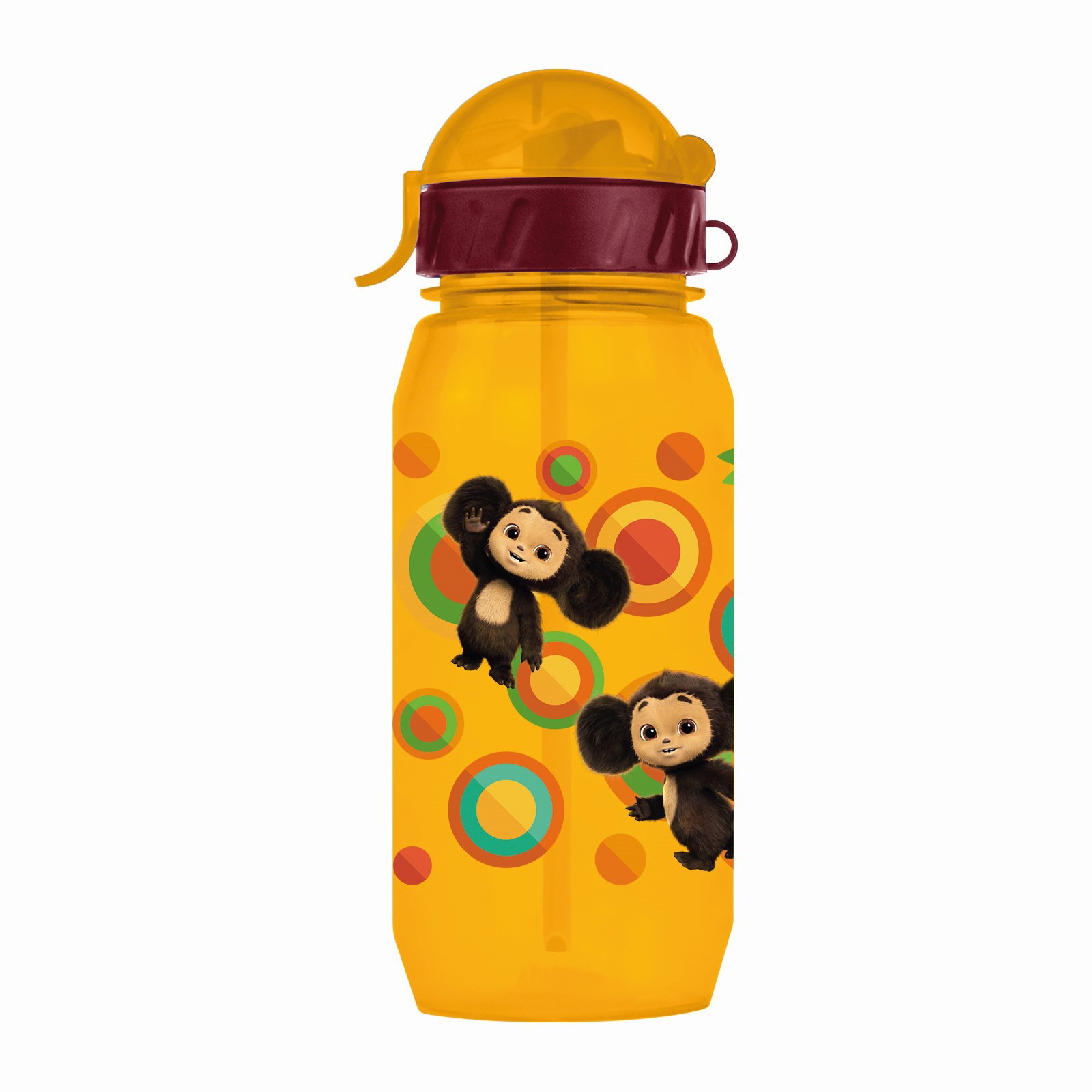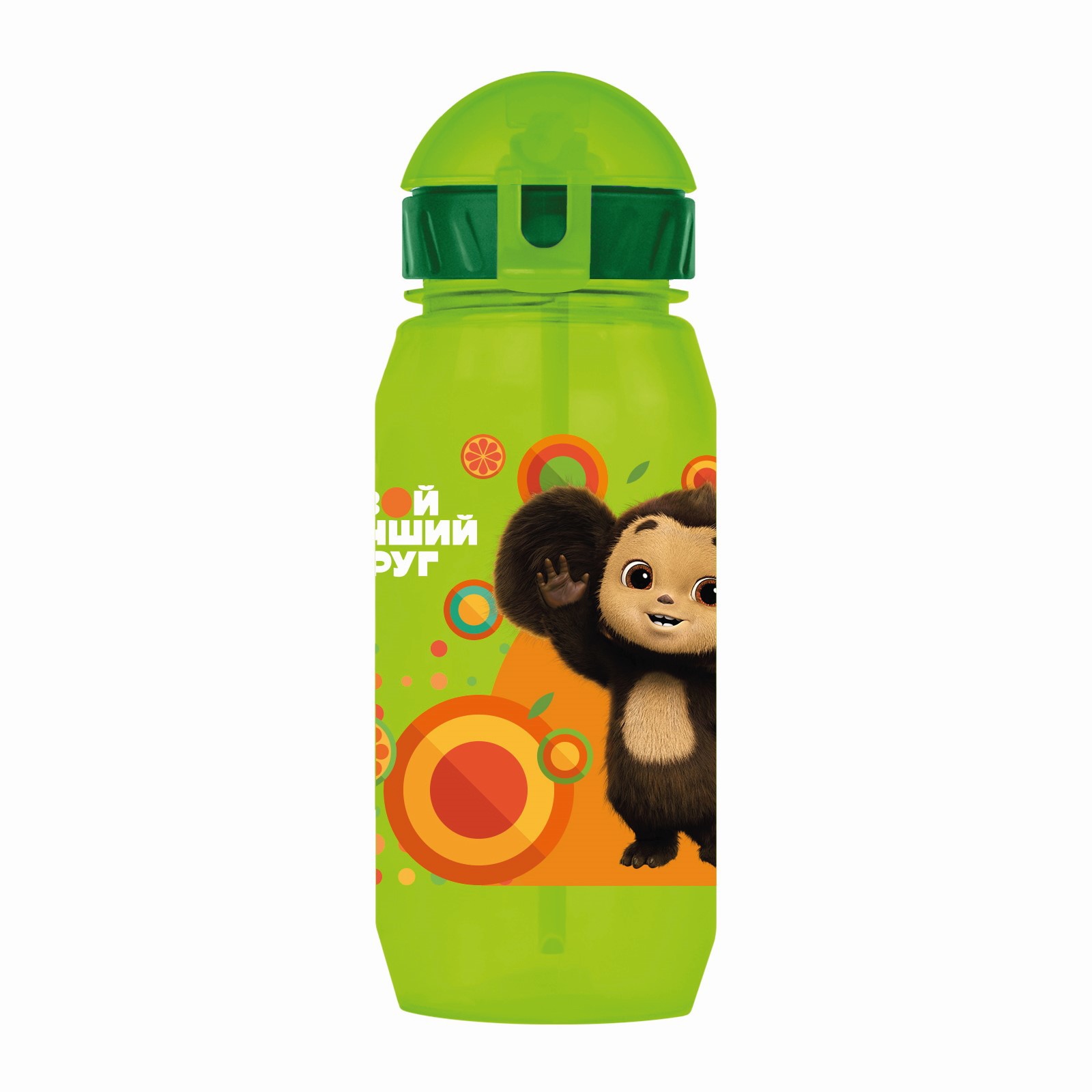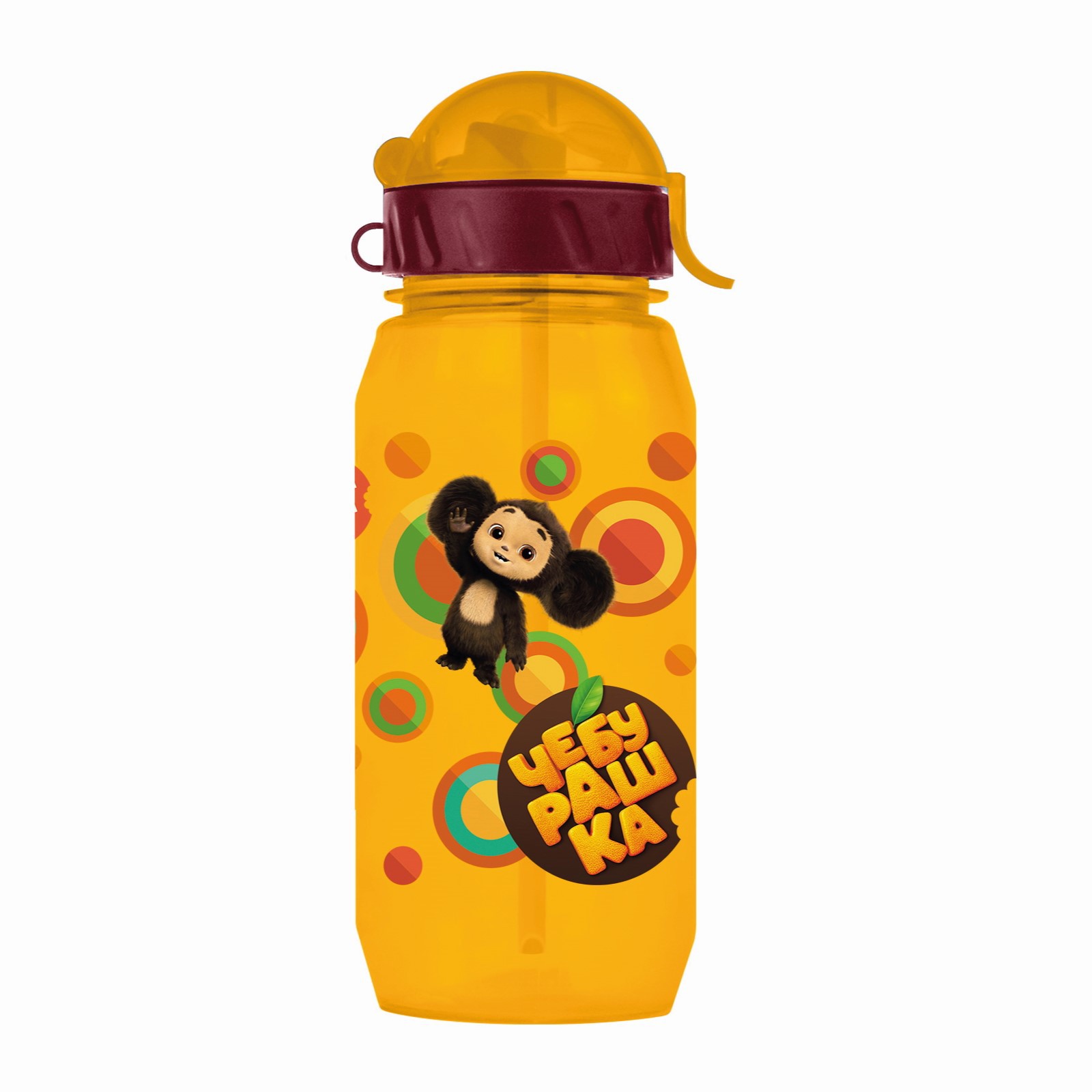 Бутылка для воды 400мл., с трубочкой и шнурком «Чебурашка», цвет и рисунок МИКС (№9772305).