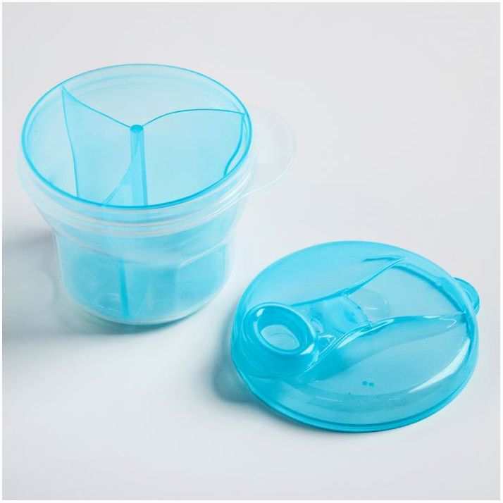 Контейнер плотно закрывается и позволяет удобно хранить сухую молочную смесь. Такая ёмкость пригодится в поездке или гостях, чтобы быстро приготовить пищу для ребёнка. Вы без труда пересыпете смесь из контейнера в бутылочку благодаря специальному горлышку в крышке.